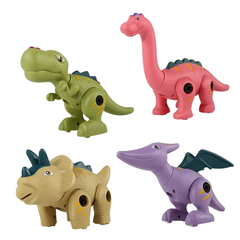 HW ของเล่นเด็กเพื่อการศึกษาปริศนา DIY ถอดชิ้นส่วนไดโนเสาร์ที่มีพื้นเสื่อ,ไขควงมือ,แผ่นปูพื้นไขควง4ชิ้น